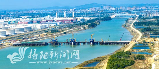 揭阳大南海跨龙江河大桥建设有序推进,预计明年6月底完工
