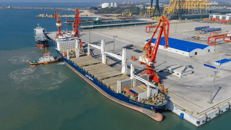 近日,经揭阳海事部门全方位精准护航,一艘装载海工风电装备的运输船舶安全靠泊揭阳港前詹通用码头,在完成装卸作业后启航前往法国。此次启航标志着我市新能源装备“走出去”迈出关键一步,也为揭阳港外贸通道拓展高附加值新能源装备运输领域打响“第一炮”。