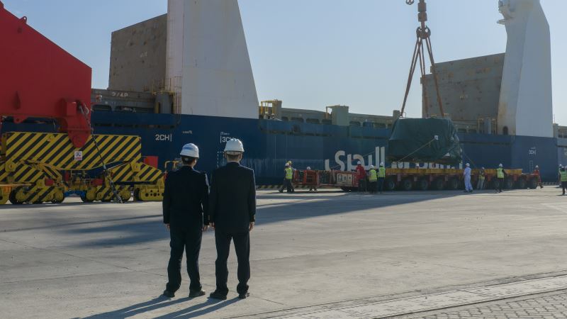 据介绍,此次运输任务是揭阳港风电装备出口欧洲单船货值超亿元“第一单”,意义重大。本航次出口货物包括风力发电机中心支架、轮毂及电机组直驱装置等关键部件,出口总价值约1.2亿元人民币。该批货物具有单件重量大、装卸工序复杂等特点,对通航组织和作业安全要求很高。为保障各项相关工作安全、顺利推进,揭阳海事部门坚持“提前介入、全程保障”,提前深入调研对接,精准掌握码头、船舶及货主单位需求,制订了专项保障方案。