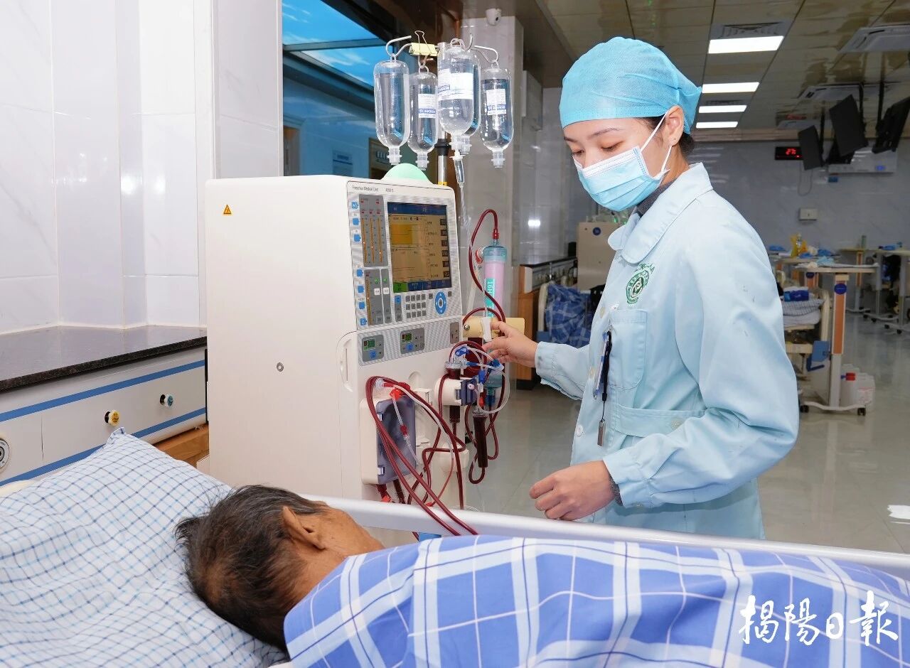 血液透析科拥有53台德国费森尤斯血液透析机及3套水处理系统,年可满足3.5万人次的透析治疗需求,已成为揭阳市区规模较大、技术规范的透析中心之一。科室开展血液透析、血液滤过、临时导管及长期导管植入术等多种治疗项目,2025年新开展动静脉人工内瘘成形术、动静脉人工内瘘人工血管转流术、经皮静脉球囊扩张术等技术,显著提升了终末期肾病患者的救治水平,对于长期透析患者而言,内瘘作为“生命线”,其建立与维护直接关乎患者的生活质量和生存预后,项目的开展也是体现医院综合诊疗实力与多学科协作水平的关键。经皮静脉球囊扩张术的成功开展,标志着科室血管通路管理成功迈入“腔内治疗时代”,围绕内瘘“建、用、养、修”的全周期管理模式正在加速完善。