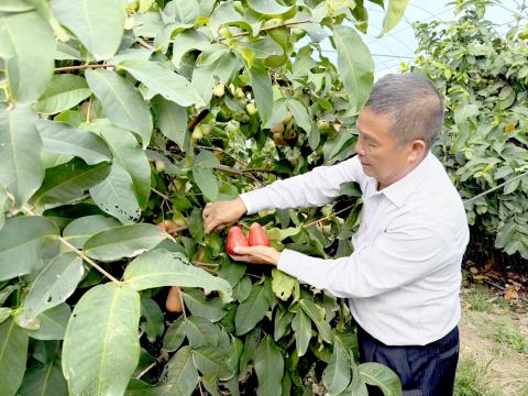 在技术赋能下,旧住村的水果产业形成了“四季有果”的立体格局。350亩生态果园内,除莲雾外,还规模化种植甜油柑、龙鳞荔枝、良种芒果、沃柑等20余种特色果蔬,全年都能满足游客采摘体验需求。