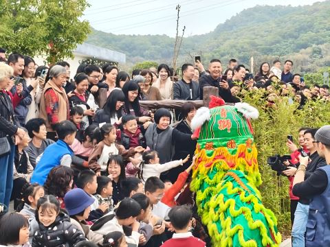 现场群众纷纷上前与醒狮互动,沾沾祥瑞福气。沈梓凡 郑 媛 摄