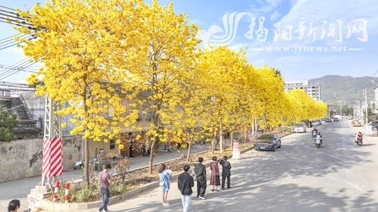 春光正好,花开正盛。每年初春,揭东区埔田镇车田村的黄花风铃木枝头繁花似锦,在暖阳与微风中摇曳生姿,将这条人来人往、车水马龙的道路,晕染成充满希望与欢乐的春日长卷,引得村民与游客纷至沓来,共享并定格明媚春光。何小妍 文 林碧鸿 郑佐晖 摄