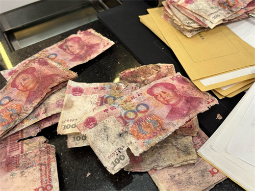 该网点柜员第一时间接待该客户,耐心安抚其焦急情绪,并立即向网点主管汇报情况。面对这批异味刺鼻、极易破损的特殊污损钱币,网点主管迅速按照残损人民币兑换规范进行处理,全程在监控下规范操作。为避免钱币二次损坏,主管使用镊子等专用工具,小心翼翼地对粘连结块的纸币进行分离、展平与清理,逐张细致鉴别票面完整度。柜员也主动配合协助,与主管分工协作、耐心清点,严格依照兑换标准认真甄别,两人坚守岗位忙碌了整整一个下午,尽最大努力为客户挽回经济损失。经过专业鉴定与规范处理,最终为该客户成功兑换6000元现金。拿到兑换好的新钞,客户激动不已,对该网点工作人员不嫌脏、不怕烦、认真负责的服务态度连连称赞,给予高度评价。