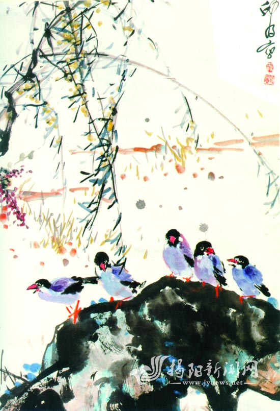 这首诗看似描写江面上的翡翠鸟残害鱼儿、破坏泽国的景象,实则另有深意。丘及以诗为喻,抨击“四人帮”的残暴行径,歌颂国家拨乱反正的伟大胜利,寄托了对国家繁荣富强、人民安居乐业的美好期盼。诗画相融,寓意深远,充分展现了丘及以艺术为武器,抨击黑暗、歌颂光明的革命情怀。