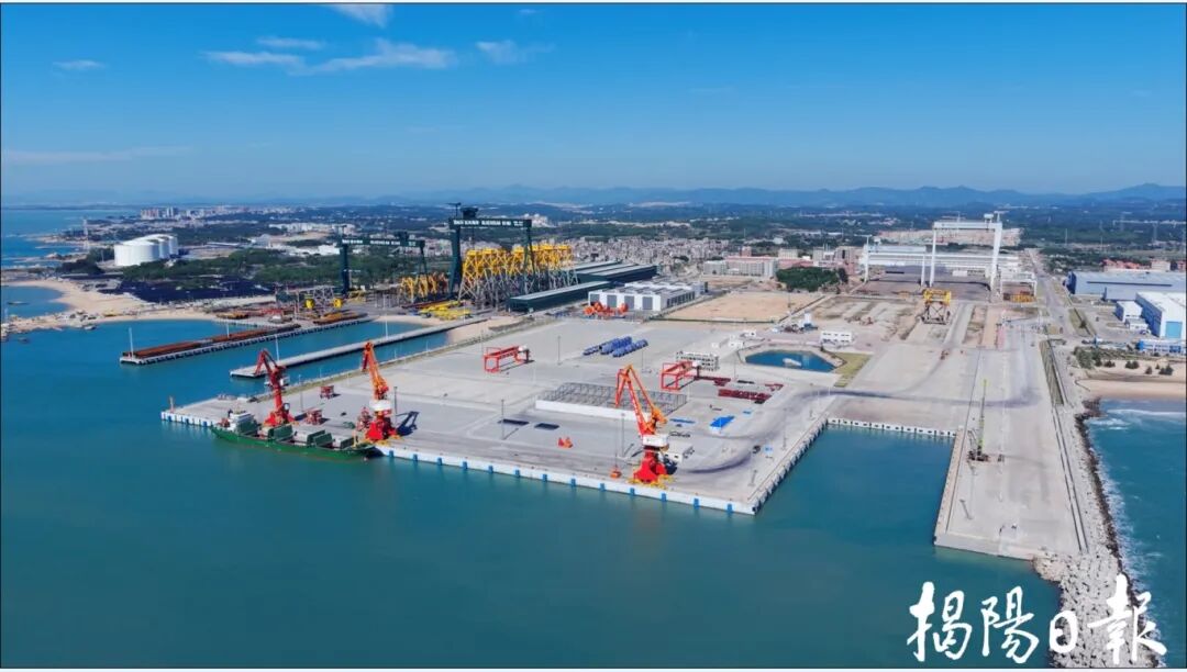 惠来前詹通用码头,现代化泊位与大型起重设备整齐排布,展现出粤东沿海重要港口枢纽的建设风貌。