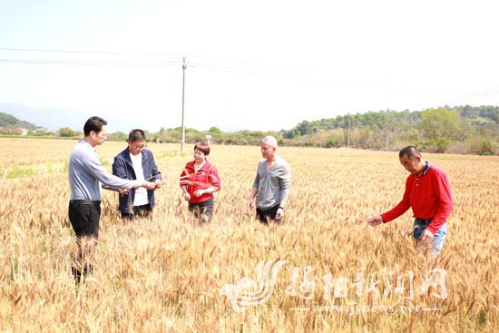 走进位于龙潭镇富光村的揭西县机本尖种养专业合作社的麦田基地,沉甸甸的麦穗压弯了麦秆,在阳光下泛着耀眼的金光,空气中弥漫着清新的麦香。田间地头,市、县农业农村部门的工作人员与农技专家正穿梭其间,仔细查看麦穗长势、籽粒饱满度,与种植户交流田间管理经验,为即将到来的小麦收割做好技术指导。