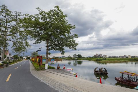 山湖村的韵,藏于底蕴深厚的人文肌理。这座建寨五百余年的古村,是杨氏族人世代聚居之地,潮客交融的文化在此沉淀,造就了独具特色的建筑风貌。村内民居以潮汕传统的 “下山虎”“四点金” 为主,局部可见 “驷马拖车” 格局,宗祠、古庙错落分布,青竹庵的精美嵌瓷工艺尽显潮汕匠人匠心,连理而生的古榕枝繁叶茂,守护着古村的岁月静好。一口古井清泉甘甜,滋养了世世代代的山湖人,也见证着村落的变迁;湖畔的潮汕特色茶舍,成为游客歇脚品茶、感受潮汕文化的好去处,茶香袅袅间,尽是岭南乡村的闲适与温情。