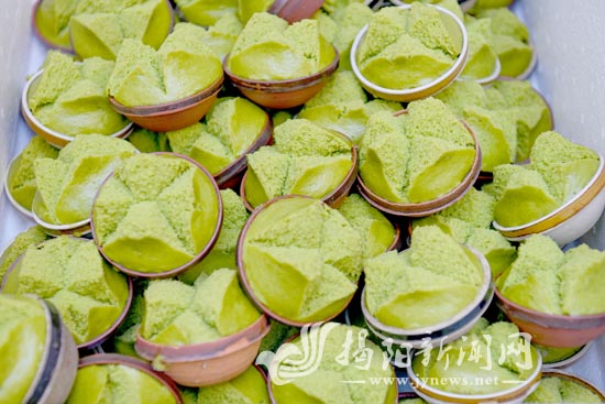在榕城区西头综合市场里,一家专营潮汕粿品的摊位前,刚蒸制好的粿品冒着热气,香气扑面而来,其中朴籽粿作为潮汕清明独有的传统限定美食,是家家户户备节的刚需,稳稳占据市场C位。据店主介绍,每天清晨5点就开工忙碌,摘洗新鲜朴籽叶、打汁、揉米粉、调糖、蒸制,每一道工序都一丝不苟。摊位上,黄绿透亮的朴籽粿摞得整整齐齐,大多粿品表皮自然开裂,潮汕人俗称“笑粿”,寓意是慎终追远、缅怀先人,咬上一口软糯清甜,朴籽叶的清香在舌尖散开,甜而不腻。“每年3月下旬开始,朴籽粿就进入热销期,一天要蒸6炉,每炉50多个,刚出锅就被街坊买走,老顾客多还得提前预订。”店主麻利地给顾客打包,笑着说道,来买的大多是本地市民,也有专程寻味的外地游客,有些一买就是几十个,除了自家过节应景,还有人买了寄给远在异乡的亲友品尝家乡的味道。