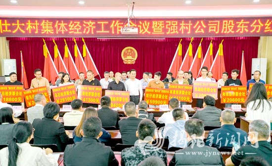 近日,岐石镇召开壮大村集体经济工作会议暨强村公司股东分红大会,岐石镇强村公司再分红35万元(见图。胡旭莹 摄),实实在在的收益红利,让该镇各村集体共享发展成果,标志着岐石镇以强村公司赋能乡村共富工作取得阶段性成效。据了解,岐石镇强村公司预计总收益88.96万元,已实现收益68.41万元。
